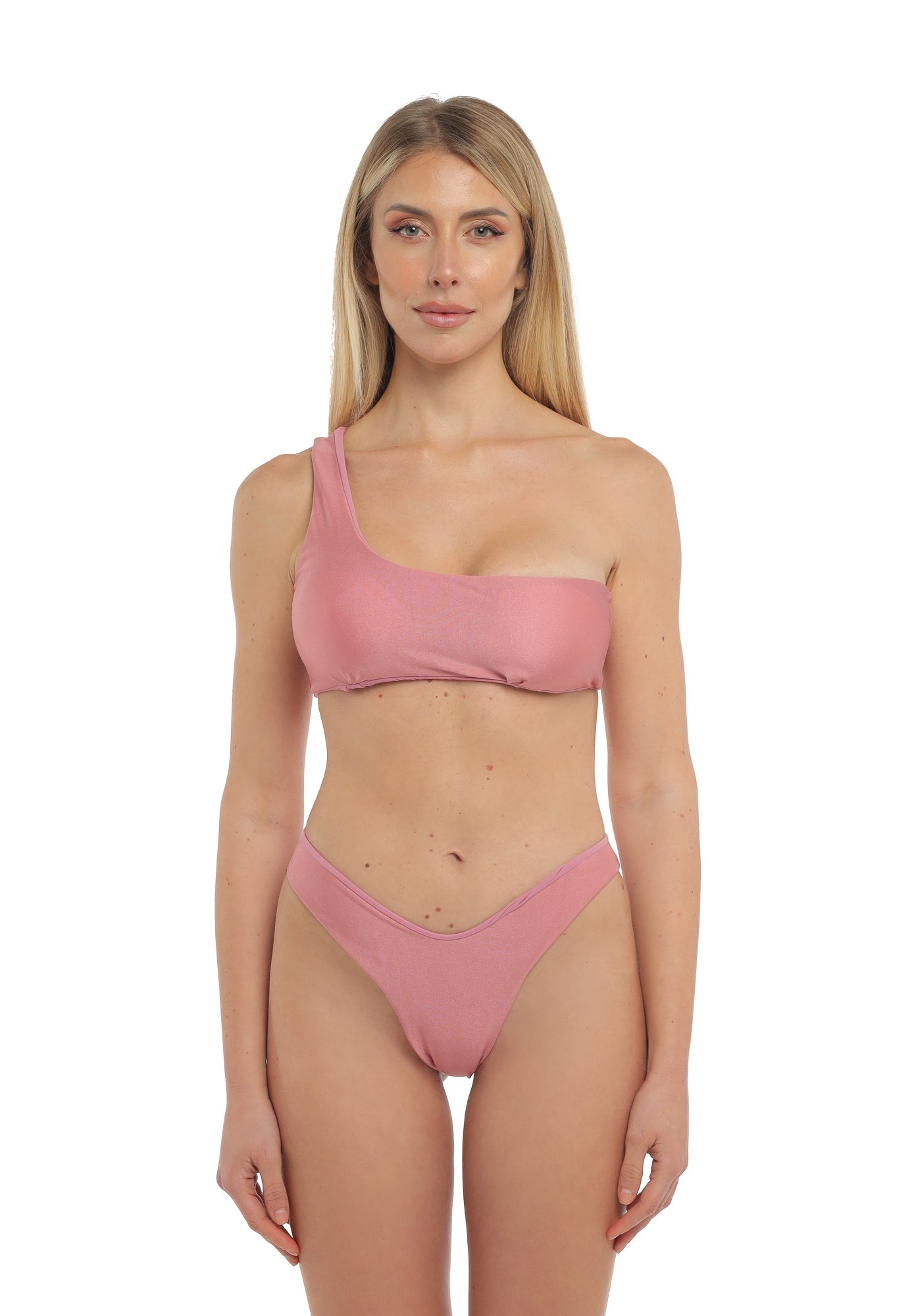 Top monospalla imbottito con coppe preformate estraibili, possibilità di sostituirle con coppe push up a rettangolo acquistabili separatamente sul nostro store.